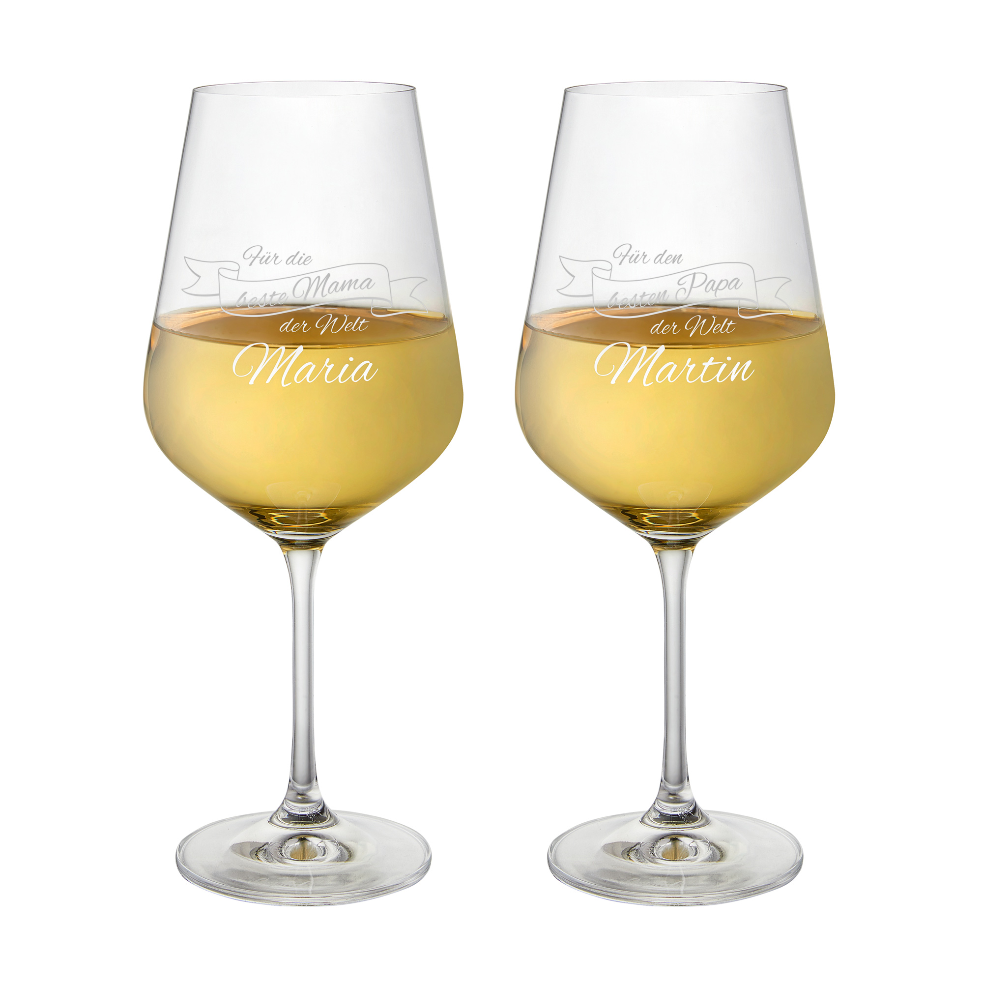 Gemütlichkeit zu zweit - vor allem im Sommer passt ein schöner, kühler Weißwein perfekt dazu. Wenn deine Eltern auch so denken und wert auf Eleganz legen, dann sollten auch die Weingläser stimmen. Denn wenn die Weingläser so elegant und persönlich sind wie das Gläserset aus zwei Weißweingläsern macht der Weingenuß doch doch mehr Spaß. Denn aus den individuellen Weingläsern mit Namensgravur trinkt sich auch der edelste Tropfen noch ein wenig edler.