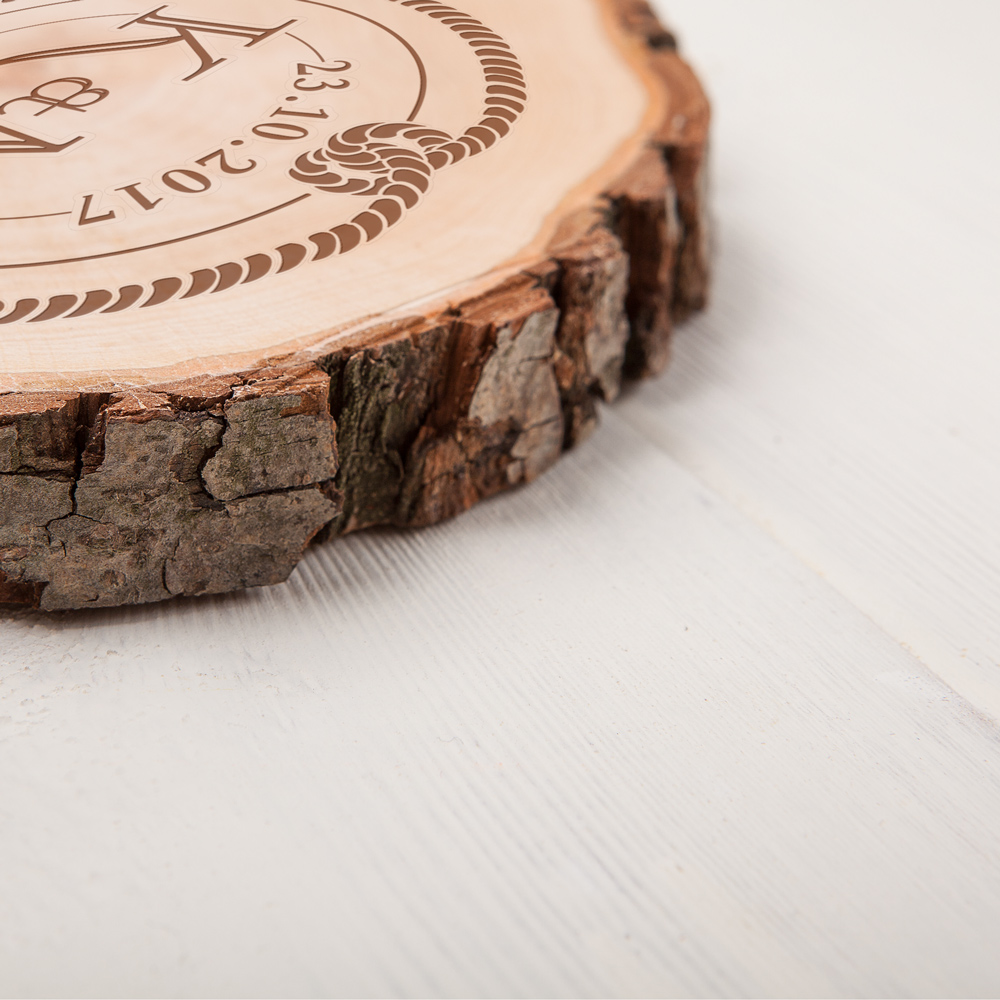 Schicke Baumscheiben Deko fürs Eigenheim - für alle, die zusammen einen sicheren Hafen gefunden haben oder gerne zusammen die stürmische See des Lebens erkunden wollen. Das Motiv mit Anker und Knoten lässt den oder die Beschenkte oder die Beschenkten an einsam-zweisame Stunden auf See denken. Und macht sich perfekt als Dekoration sowohl für den Garten, den Balkon oder Wohnung. Oder eben die gemütliche Kajüte.