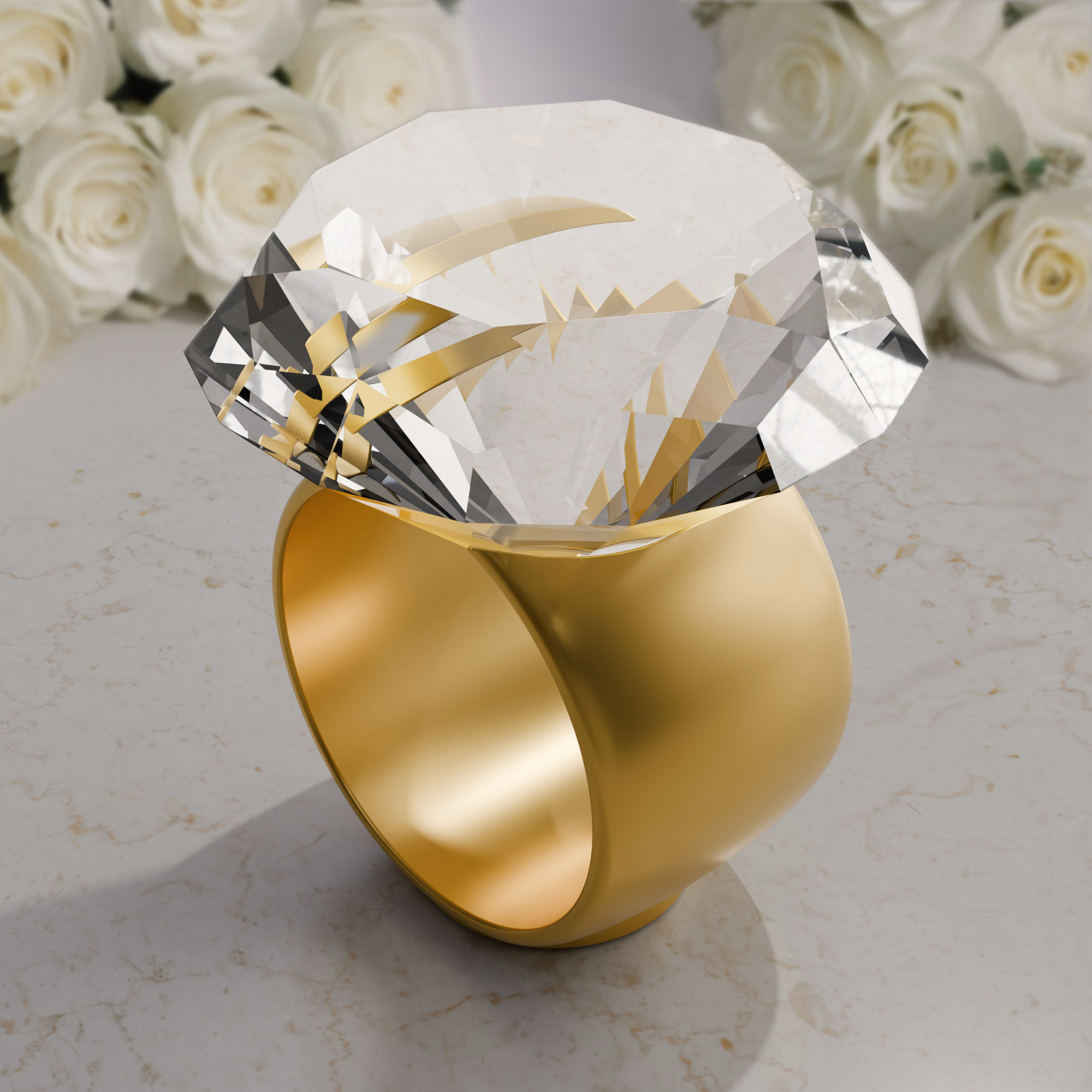 Der moderne, geschwungene Look des Ständers in edlem Gold harmoniert ideal mit der klaren Eleganz des Diamanten. Und das Beste: Zusammen sehen die beiden aus wie ein übergroßer Diamantring! So wird aus Deinem Präsent ein echtes Schmuckstück für jeden Raum. Einfach hineinstellen, ausrichten – und bewundern lassen!
