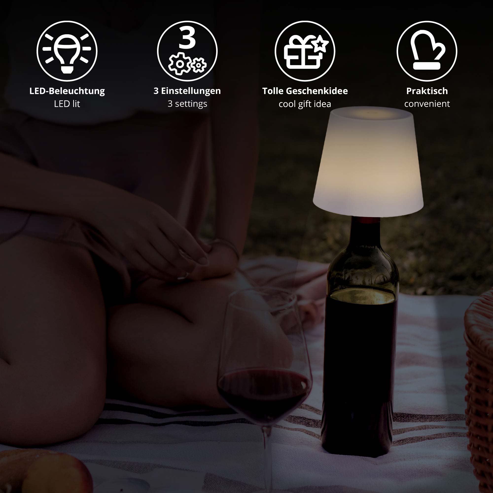 Du willst Deine leeren Flaschen nicht einfach wegwerfen? Dann verwandle sie mit der LED Flaschenleuchte in ein stylisches Deko-Highlight! Ob Wein-, Gin- oder Whiskeyflasche – mit einem Handgriff entsteht eine individuelle Tischlampe für gemütliche Abende.