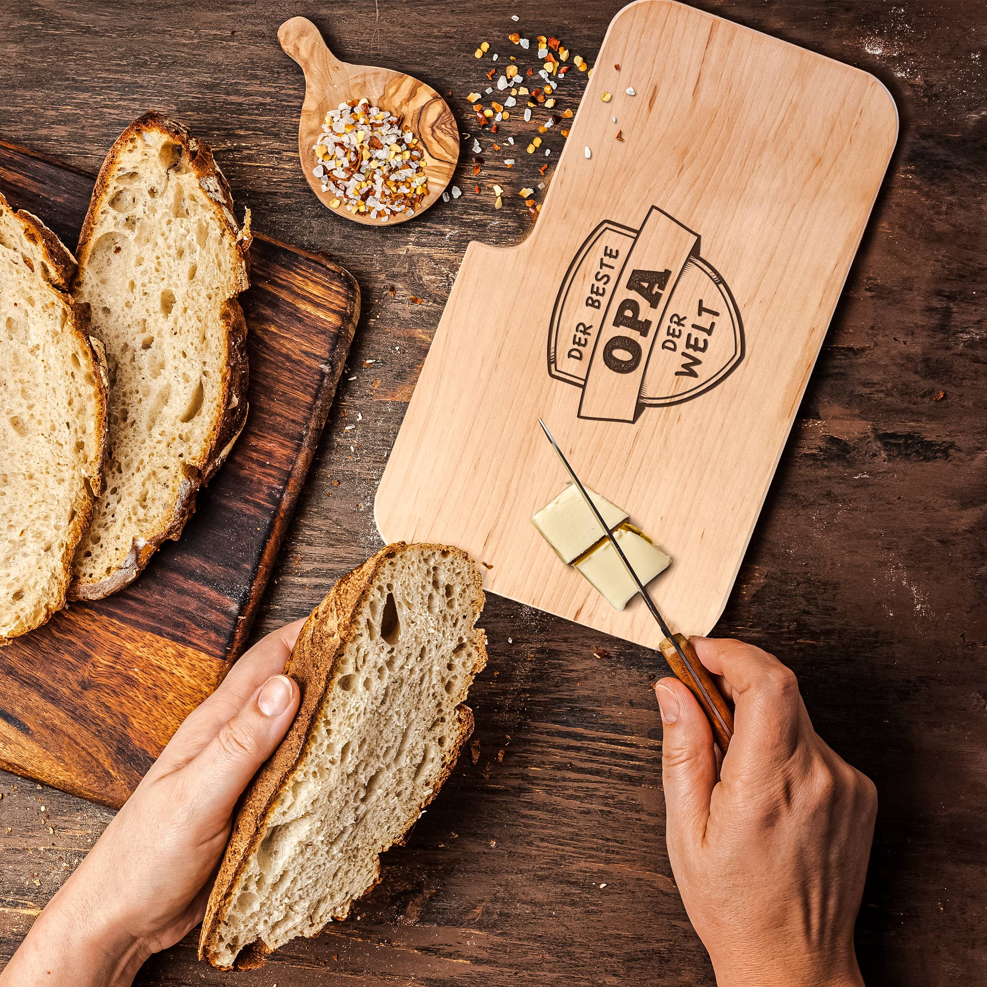 Dank der Gravur "Der beste Opa der Welt" inklusive Wappenmotiv eignet sich das Holzbrett ausgezeichnet als Geschenk für Opa zum Geburtstag oder zu Weihnachten.