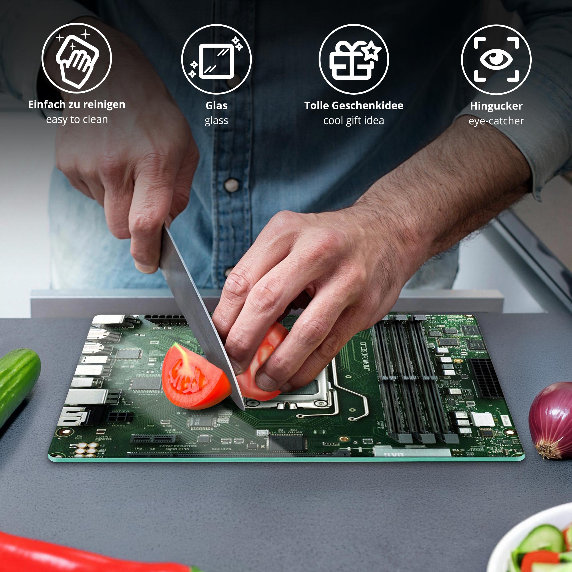 Du bist Technikliebhaber, Nerd oder einfach Fan von außergewöhnlichem Küchendesign? Dann ist dieses Schneidebrett Dein perfektes Upgrade! Das hochwertige Glasbrett zeigt die detaillierte Draufsicht eines Motherboards – mit Prozessor-Sockel, RAM-Bänken und Co. Ein echter Eyecatcher, der Funktionalität mit kreativem Stil verbindet.