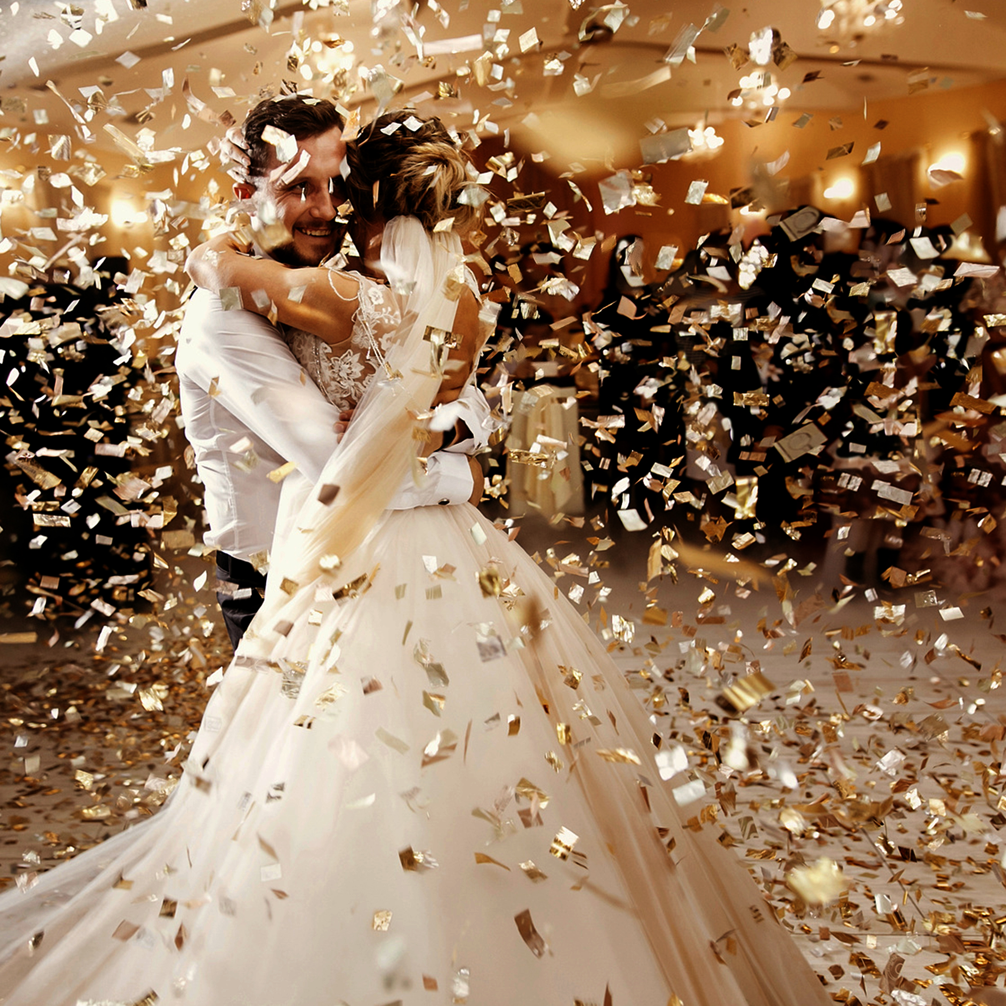 - Bereichere Feiern aller Art mit goldenen Konfettiwolken
