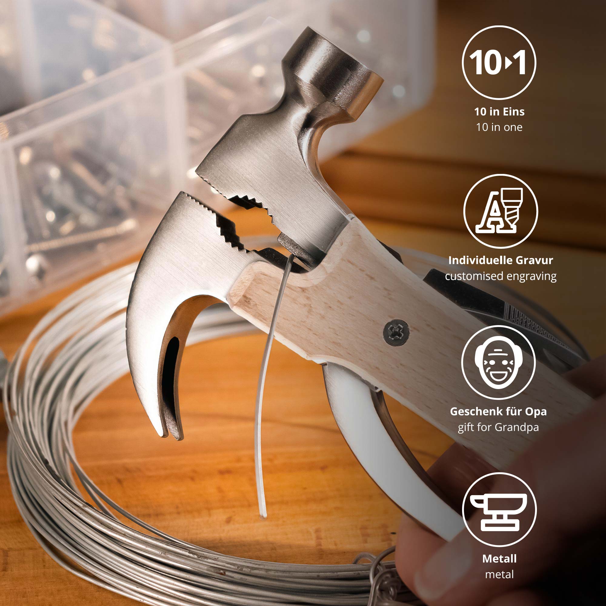 Das Multitool ist dabei das perfekte Gerät für unterwegs. Es enthält 10 verschiedene Werkzeug, unter anderem Hammer, Drahtschneider, Zange, Flaschenöffner, Taschenmesser, Schlitzschraubenzieher, Säge, Reibahle, Feile, Kreuz-Schraubenzieher. Besonders liebevoll wird es durch das Gravur-Motiv "bester Opa" - das noch mit Deinem Wunschnamen ergänzt werden kann. Tolle Geschenkidee für Opa!