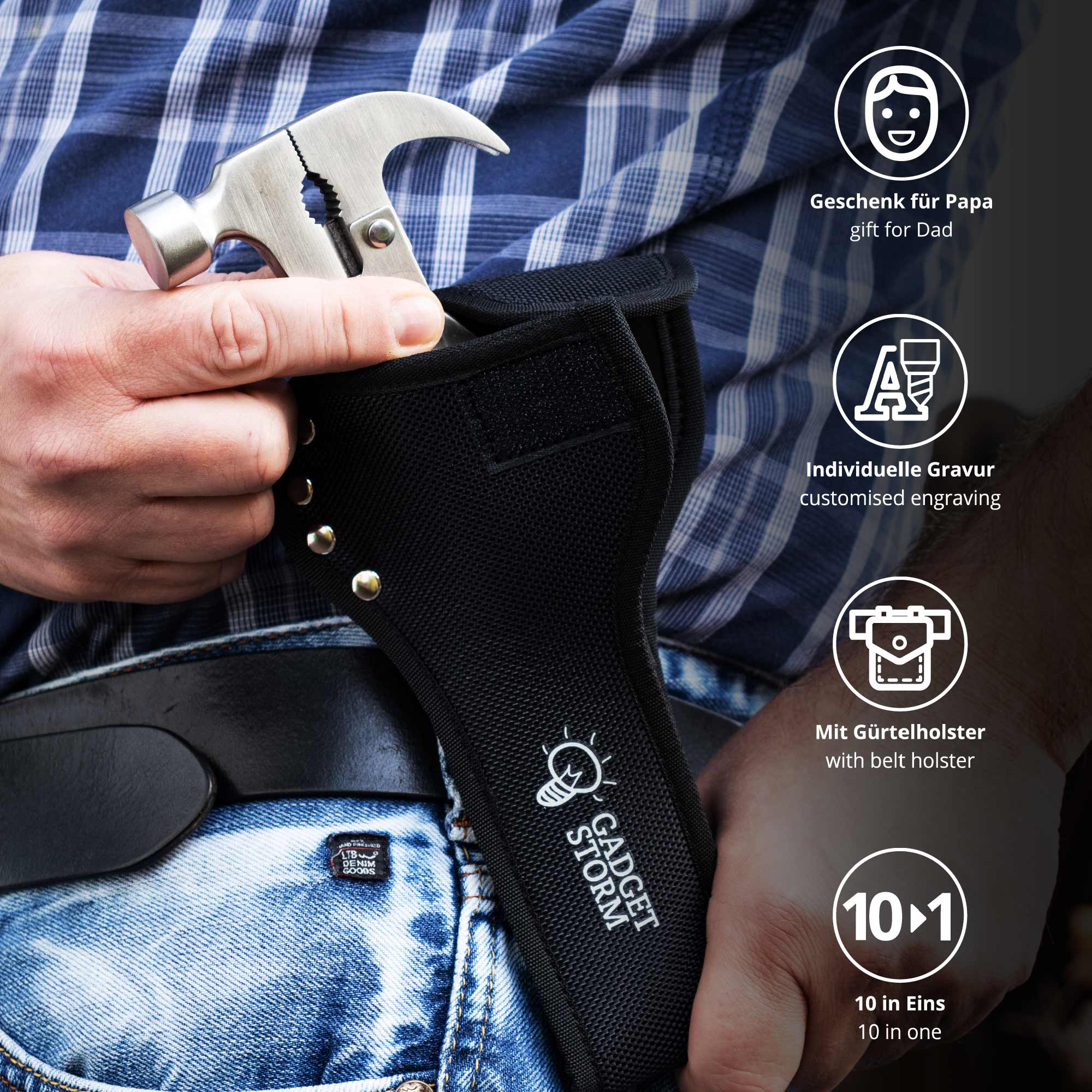 Ob Dein Papa nun einmal spontan heimwerken muss oder einfach nur ein praktisches Multifunktionswerkzeug für unterwegs sucht: Das Multifunktionswerkzeug für den besten Papa hat garantiert die Funktion, die er braucht. Das Werkzeug beinhaltet unter anderem Hammer, Drahtschneider, Zange, Flaschenöffner, Taschenmesser, Schlitzschraubenzieher, Säge, Reibahle, Feile, Kreuz-Schraubenzieher. Gleichzeitig wird die Gravur "bester Papa" auf der Seite aufgebracht - die wiederum ganz persönlich mit dem Namen Deines Papas ergänzt werden kann. Ein liebevolles Geschenk für Väter, die das Heimwerken lieben!