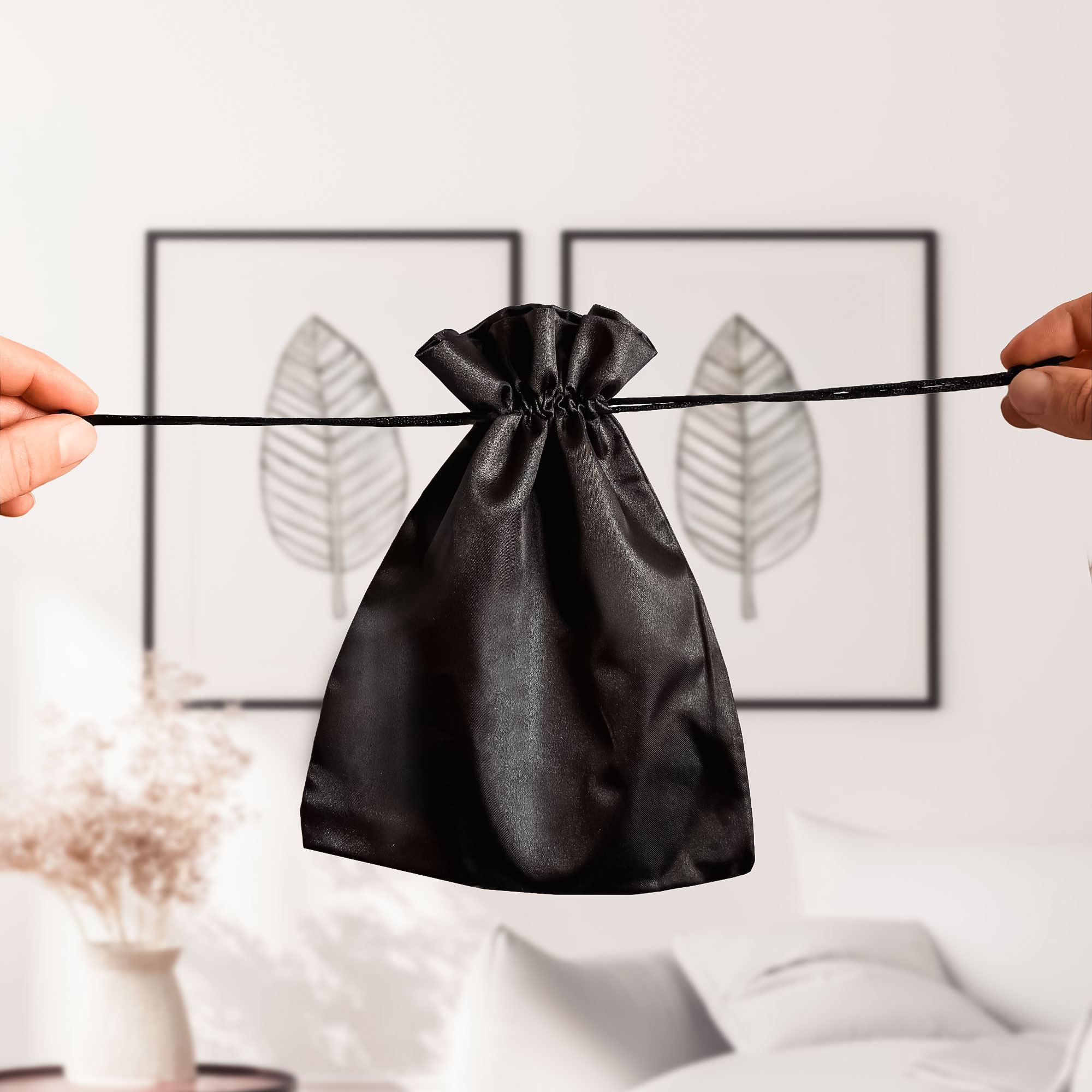 • Geschenkbeutel aus schwarzem Satin mit edlem Glanz