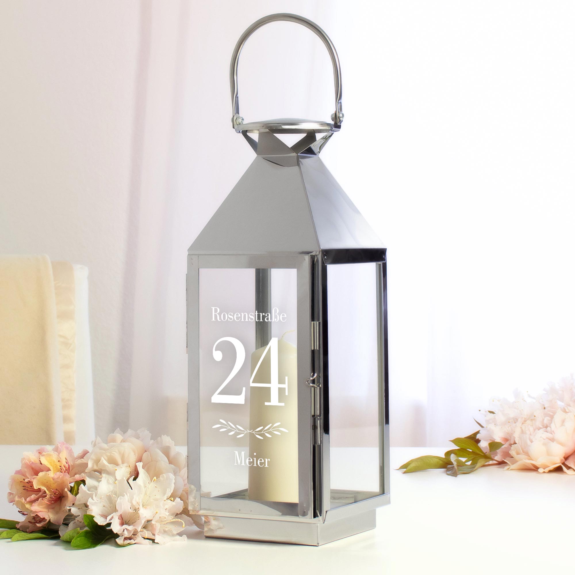 Bei Dunkelheit entfaltet die wetterfeste Laterne ihre besondere Wirkung – ganz gleich ob auf dem Balkon, der Terrasse oder am Hauseingang. Eine persönliche Geschenkidee zum Einzug, zur Einweihung und allen anderen Anlässen!