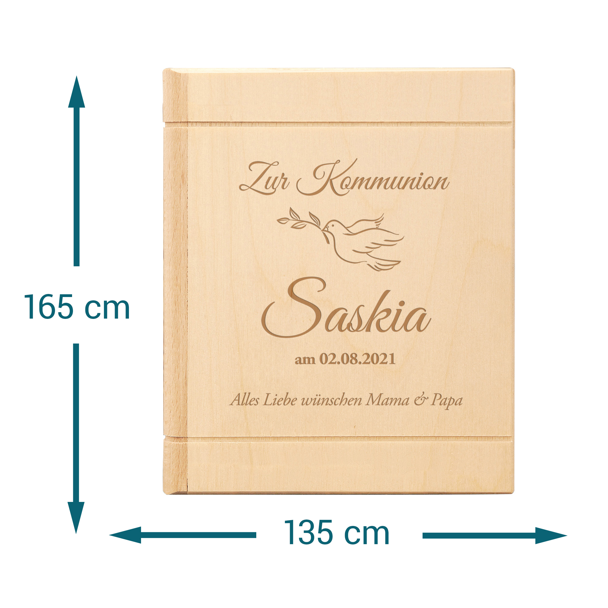 Außerdem kannst Du dem oder der Beschenkten auf originelle Weise gratulieren: Die dekorative Spardose in Buchform wird mit "Zur Kommunion", "Alles Liebe wünschen..." sowie dem Namen des Besitzers oder der Besitzerin, den Namen der Schenkenden sowie dem Datum der Kommunion graviert. Das perfekte Kommunionsgeschenk für Enkel, Kinder, Nichten, Neffen oder Patenkinder! Diese Sparbüchse ist ganz sicher kein normales Sparschwein, sie erfüllt aber alle Voraussetzungen für ein tolles Präsent.