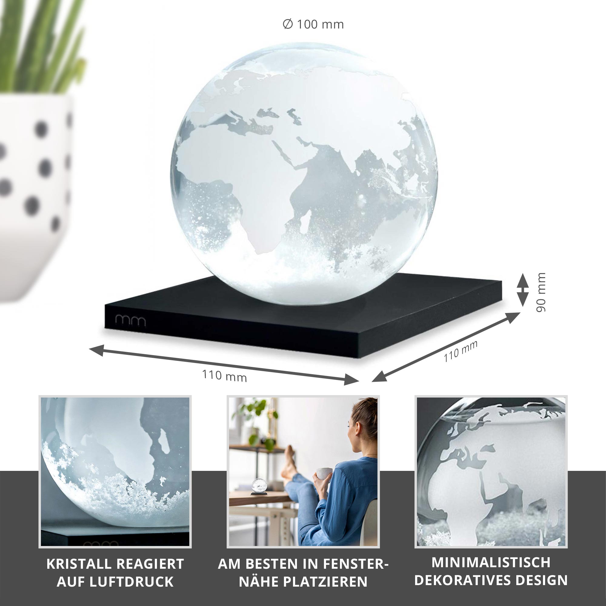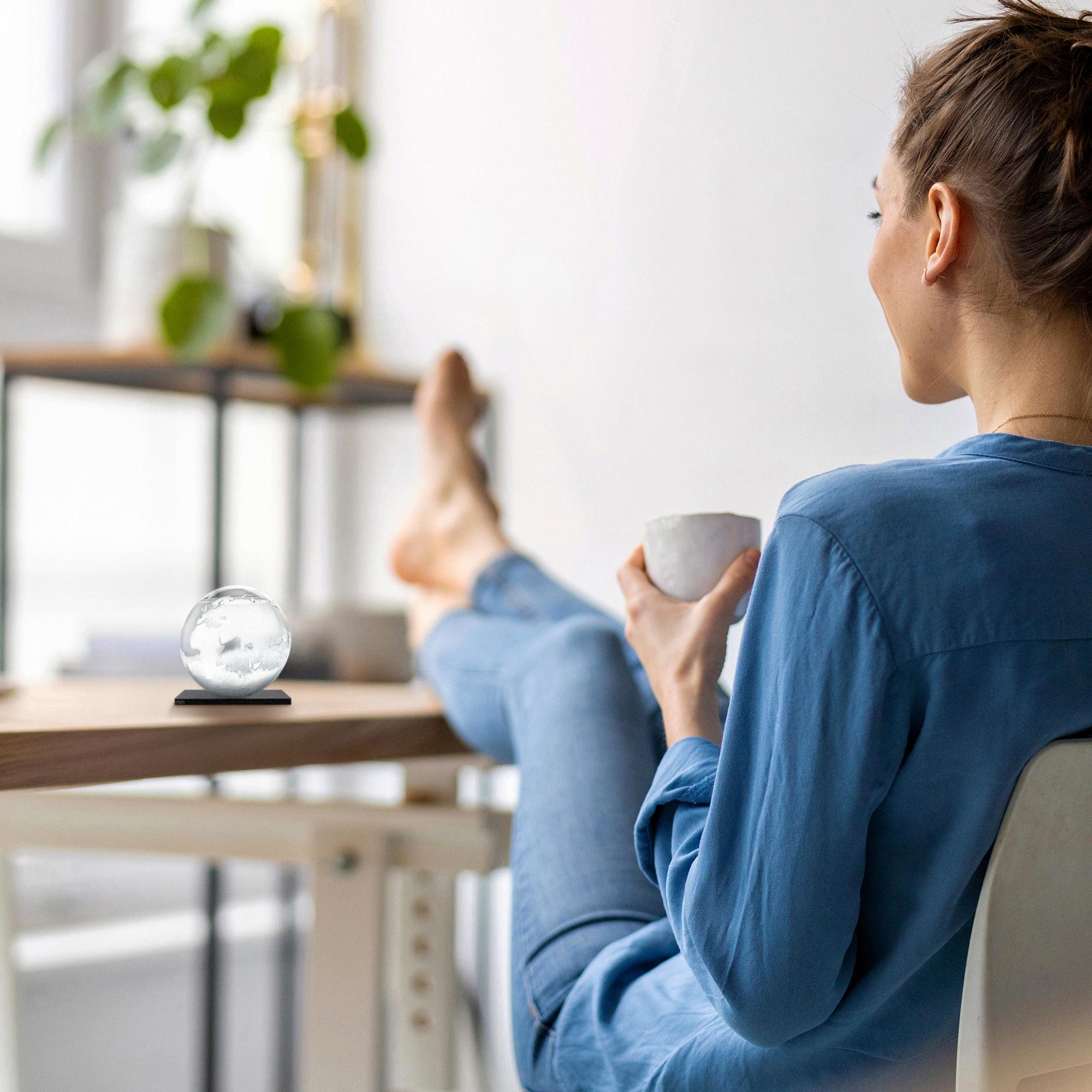 Ein Hauch von Wissenschaft und Design für Dein Zuhause: Das Sturmglas Erde ist nicht nur ein faszinierendes Wetterinstrument, sondern auch ein stilvolles Dekoelement. Die im Inneren entstehenden Kristalle reagieren auf Luftdruck und Temperatur und geben so einen Hinweis auf die bevorstehenden Wetterverhältnisse – von klar bis stürmisch.
